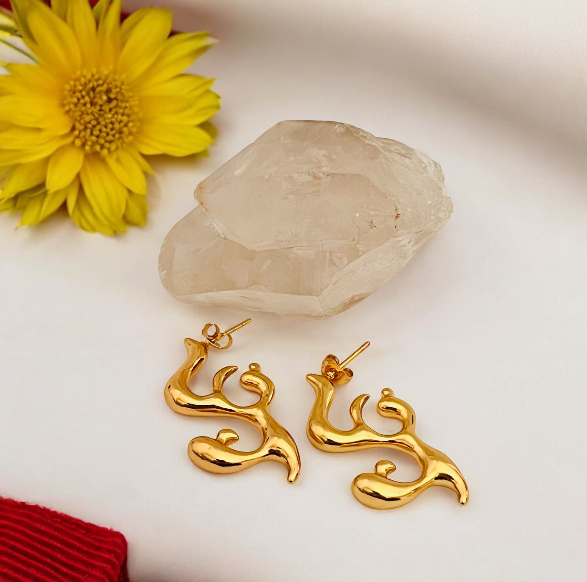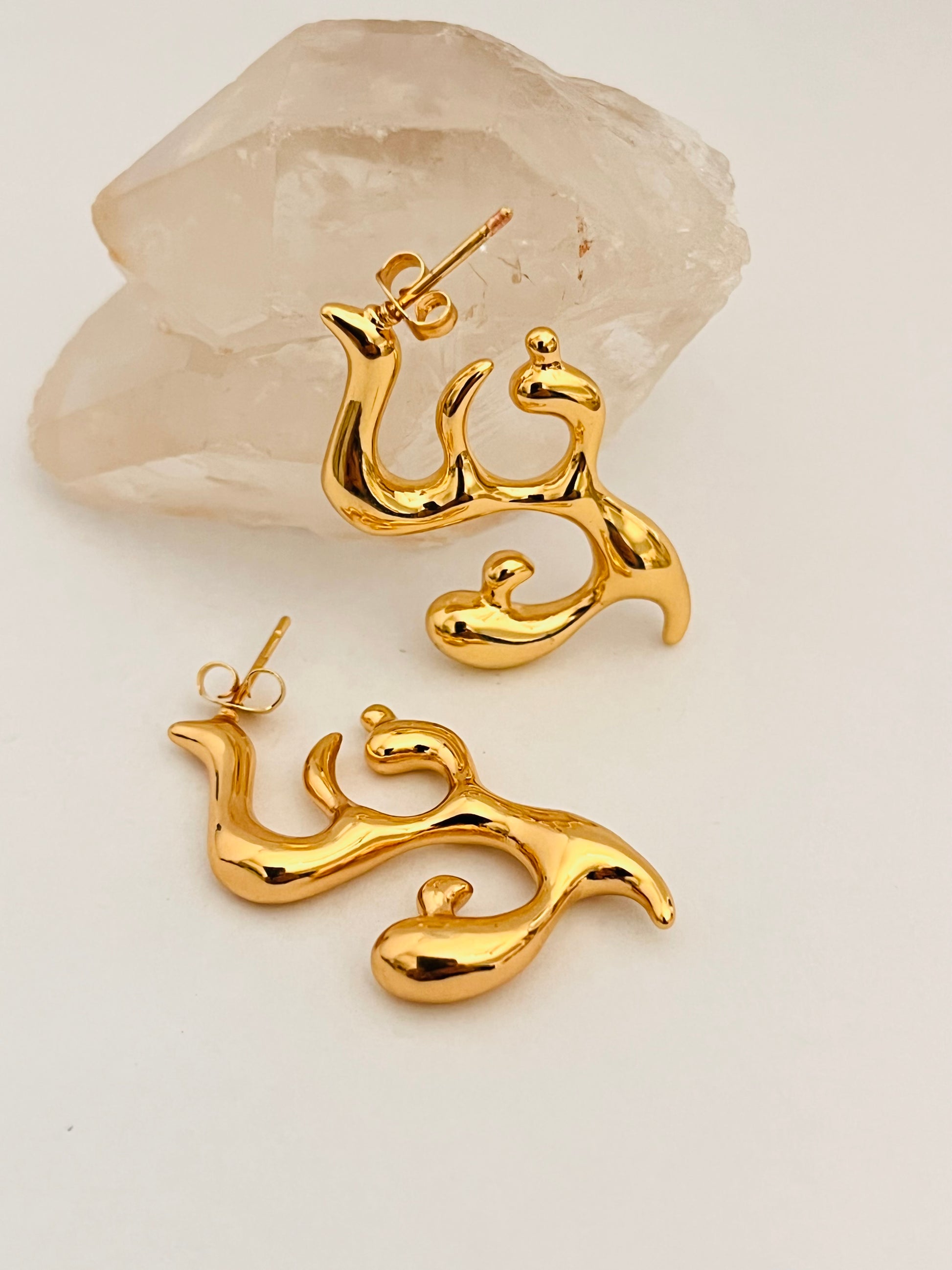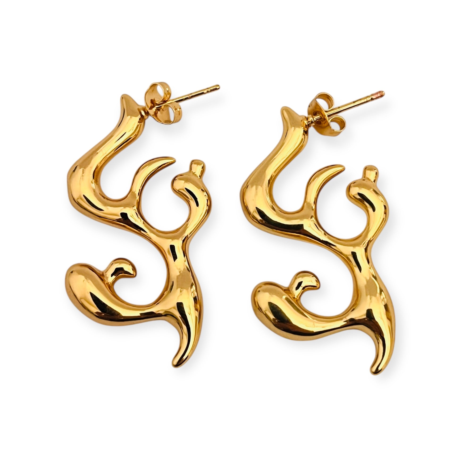 Orecchini a forma di fiamma in acciaio inossidabile,anallergico e waterproof,placcato oro.